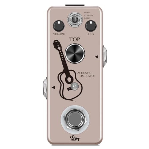 Although simplicity often comes at the cost of versatility, the ISET Acoustic Simulator Guitar Effect Pedal proves that budget-friendly gear can deliver surprisingly effective results for musicians who need quick acoustic tones without the complexity of multi-knob interfaces. At just $25, this compact pedal offers body and top controls that function as bass and treble adjustments, creating that characteristic mid-scoop effect essential for acoustic simulation. While it won’t fool anyone into thinking you’re playing a Martin, it excels at providing usable acoustic parts for rock and metal songs where you need clean contrast against distorted sections, though you’ll notice some minor noise during quiet passages.