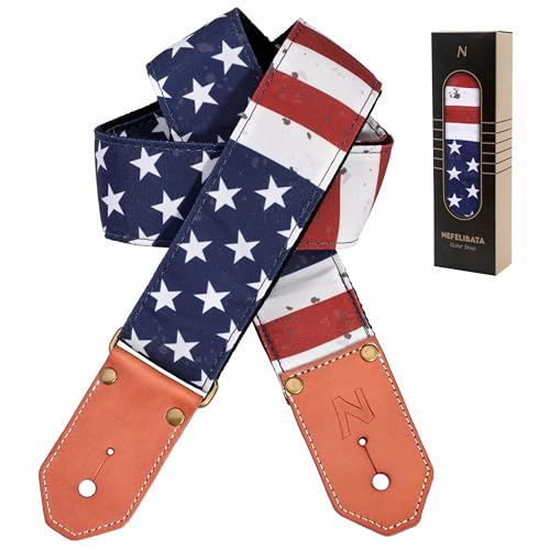 Nefelibata Guitar Strap Cotton with Leather Ends for Acoustic, Bass, Electric Guitar